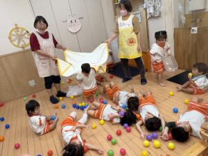 みんなでごろ〜ん🥰ボールの雨が降ってきたね🤭