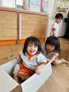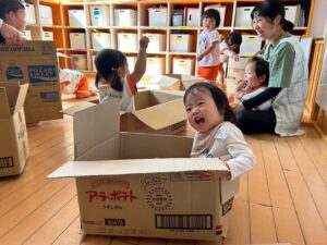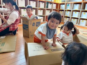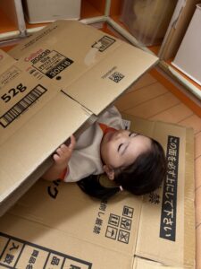 ダンボールで遊んでみました。これまた面白い🤣目を輝かせて楽しんでました😊
