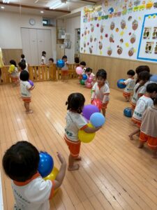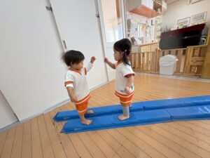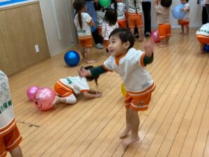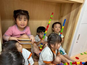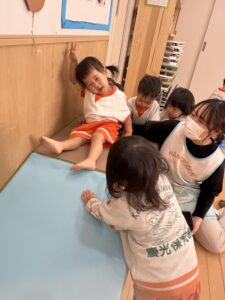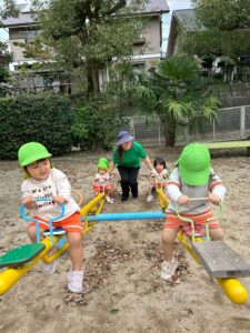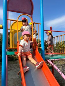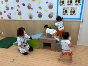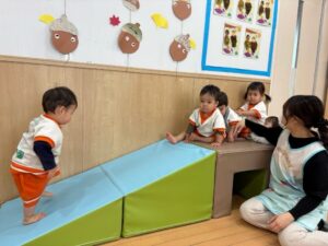 遊ぶ前に先生とお約束をしています。『順番を守って遊ぼうね。』静かにお話を聞ける様になってきました。