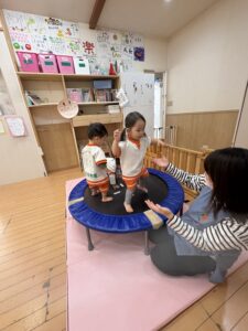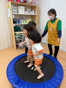 トランポリン、大好き💕、ピョンピョン高く跳べるよ😊