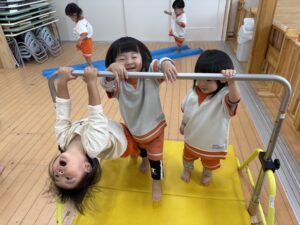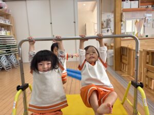 鉄棒に挑戦しました😊ブラーン、面白いねぇ〜。