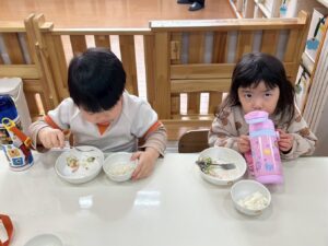 「いただきます」をしてみんなで美味しく食べました😋