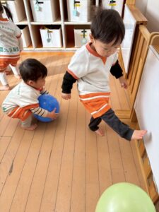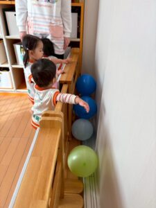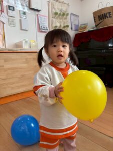 あひる組さんは久しぶりに風船で遊びました。