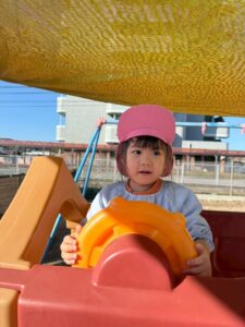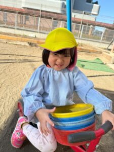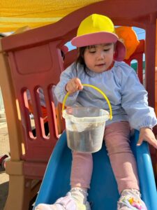 ただ乗るだけではなく、バケツや容器をもって乗る子も・・・三輪車上手に乗れるようになったね🥹
