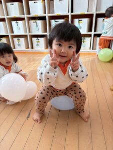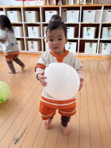 風船が目の前で割れてビックリ!で大号泣な子もいましたが、みんなで沢山体を動かして楽しみましたよ~^^