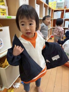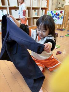 引き続き、あひる組さんは身の回りのことを自分でできるよう頑張っています。