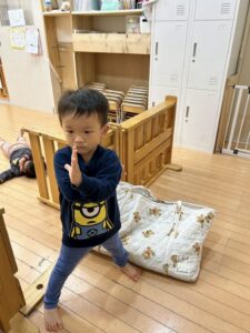 給食やおやつの椅子を出してくれたり、お布団を片付けるのを手伝ってくれたり、いつも助かっています。