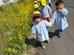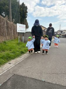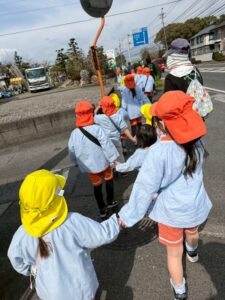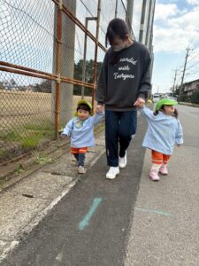 まずはお散歩!らいおん組さんと手を繋いで歩きました。