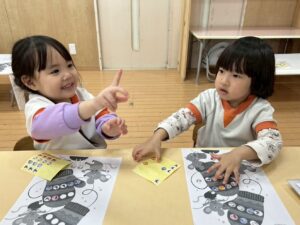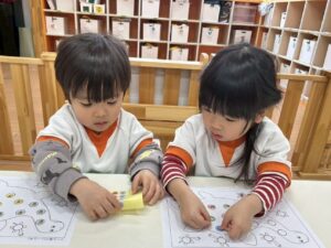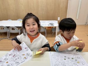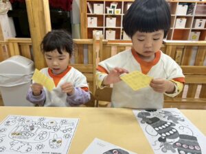 塗り絵もシール貼りもとっても上手になってきたりす組さんです(*^^*)