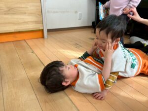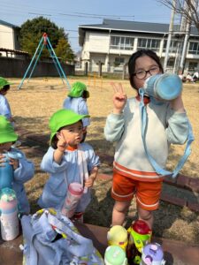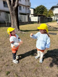 この日は避難訓練と合わせて1時間くらいお外にいました(*^^*)
