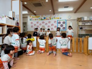 りす組さんも朝の会を一緒にしたり、お散歩に行ったりたくさん遊んでもらいました!