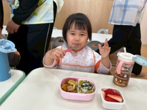 「お弁当持ってきたよー」「○○はいってる!」と朝から楽しみなお弁当日。