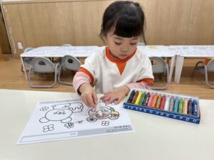 りす組さんはシール貼りと塗り絵をしました。