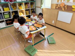 運動会の練習をしているときに、お友だちが頑張っている姿や、できるようになった事にも気づき、かっこいー。と、伝えてくれるお友だちの姿が見られました。お互いの表情を見合ってその空間があったかいものにつつまれたり、繋がっているその時間は宝物ですよねー。
