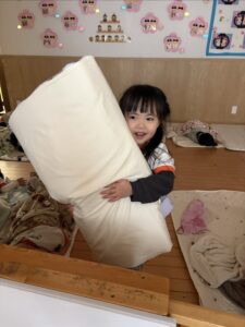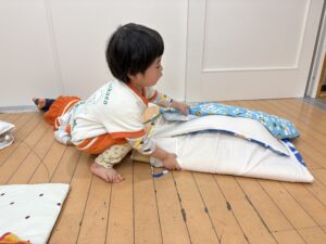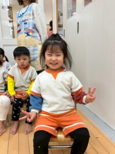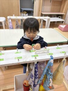りす組さんの影響で、園服を自分で畳む姿も!畳み方を見ているからなのか、とっても上手で先生たちみんなでびっくりしました!!