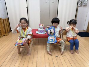 今月は2人のお友達が誕生日を迎えました。らいおん組さんも一緒にお祝いしました🎂