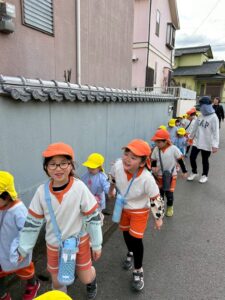 らいおん組のお兄ちゃん、お姉ちゃんと手をつないで行きました。