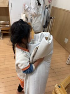 りす組さんの影響で、園服を自分で畳む姿も!畳み方を見ているからなのか、とっても上手で先生たちみんなでびっくりしました!!