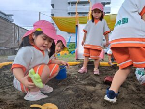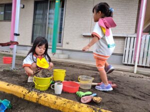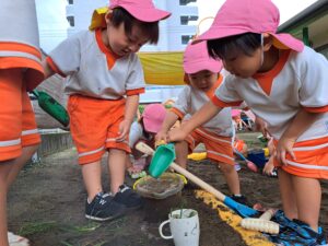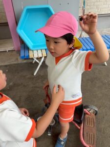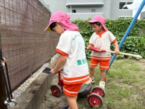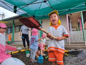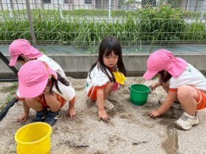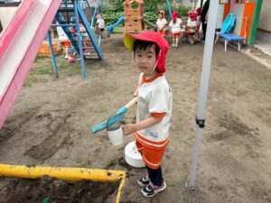 名残おしい中、先週でプールは終わりましたが、こどもたちにとって、とても楽しい活動となりました。遊びの工夫が見られたり、お友達を真似してバケツいっぱいの水を思いきってかぶったり、顔を一瞬つけて、「こんなことできるよ」と、自分のすごい所を沢山披露してくれました!水分補給や、足からプールに入ることや、プール外では歩くなどお約束も沢山ありましたが、しっかり守って過ごせたので、大きな怪我もなく、笑顔で過ごせてよかったです✨