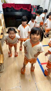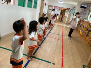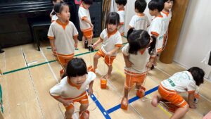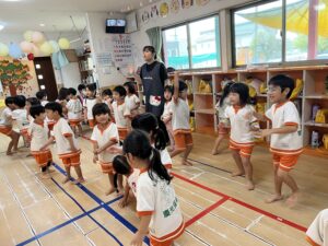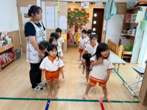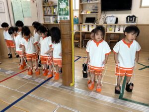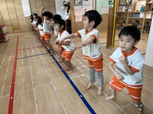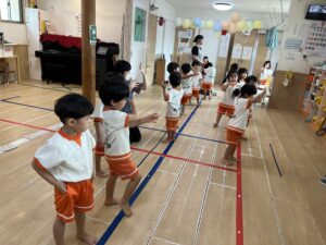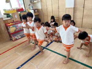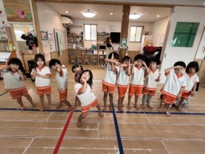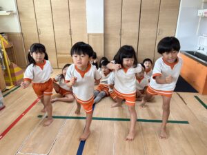 ソーラン節やダンス、かけっこに励んでいます!構えのポーズや、ソーラン節の腰を低くかがめるところがとってもかっこいいきりん組さんです!