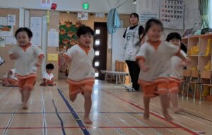 • かけっこ:うさぎ組さんときりん組さん、それぞれのクラスで力いっぱい走り切りました。最後まで諦めずに走る姿がとってもかっこいいです!