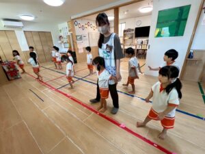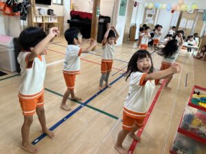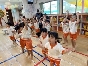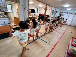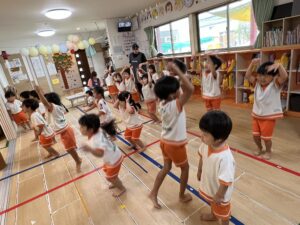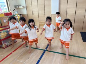 元気いっぱいの音楽に合わせて、手足を大きく動かし、みんなノリノリで踊れるようになってきました。