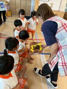 子どもたちにも一人一人に見てもらい、触ってもらいました。