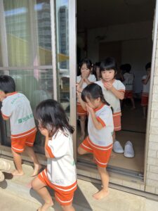 何度も行っている避難訓練!この日も上手に避難の仕方を再確認できました。