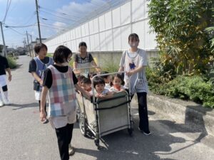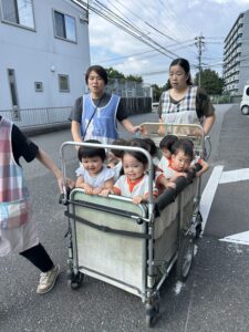 あひる組さんは、みんな泣くことなくカートに乗り、安全に避難することができました!