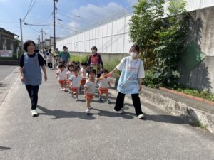 靴を履いてお散歩ロープを持ってテクテクテク・・・りす組さんも無事に避難できましたよ!
