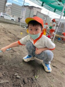 日差しが弱かった日、久しぶりの園庭へ。「園庭に行くよ」と聞いて、みんな跳び跳ねて喜んでいました😊