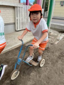 親子競技で使用する箱車も乗るのが好きで、はやく順番来ないかな〜と楽しみに待っていました♪