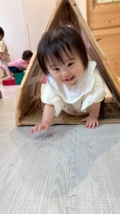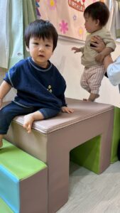金曜日はあいにくの雨でしたが、室内で運動遊びを楽しみました。トンネルをくぐったり、やわらかスロープを登ったり、牛乳パックのスロープを滑ったりと、笑顔いっぱいで元気に過ごしました!