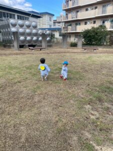 月曜日には、初めて少し遠くの久保山団地の公園までお散歩に行ってみました。きりん組さんやうさぎ組さんが遊びに来ていて、一緒に遊んでもらったり、優しく声をかけてもらったりして、みんなとても嬉しそうでした♡