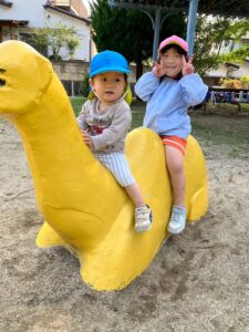 月曜日には、初めて少し遠くの久保山団地の公園までお散歩に行ってみました。きりん組さんやうさぎ組さんが遊びに来ていて、一緒に遊んでもらったり、優しく声をかけてもらったりして、みんなとても嬉しそうでした♡
