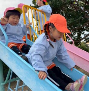 練習の合間や、太陽が出ている時間には、積極的に園庭に出て遊びます。