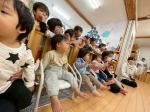 いよいよ今週土曜日に控えた発表会に向けて、きりん組さんは毎日朝の会から、熱心に練習に励んでいます。