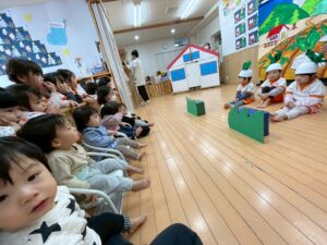 土曜日に発表会がある為、うさぎ組・きりん組のお兄ちゃんお姉ちゃんがオペレッタを見せに来てくれました!!