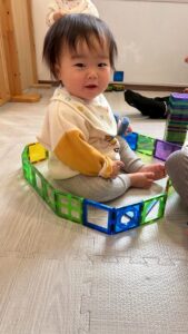 やわらかブロックでは、積み重ねることがとても上手になっていました。