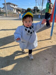 固まって豆が投げられなくなったり、勇気を出して『おにはーそと!』と、豆ボールを投げた子も、投げた後には足バタバタこわいよー!!