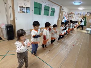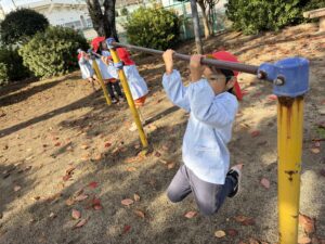 11月も後半、朝夕の冷え込みに季節の深まりを感じますが、きりん組の子どもたちは寒さに負けず元気いっぱいです!