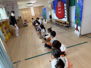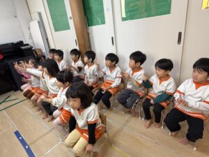 練習の合間には、園長先生から「みんな、とっても上手だね!」「大きな声が出ていてかっこいいよ」とたくさん褒めてもらい、子どもたちは照れながらも、とっても嬉しそうな誇らしい顔を見せてくれました。