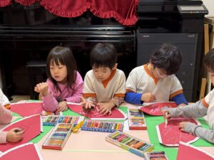 製作の時間には、12月のクリスマス会に向けた「帽子作り」を行いました。