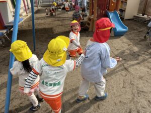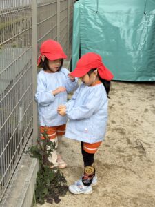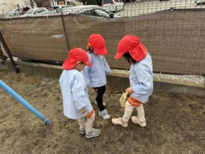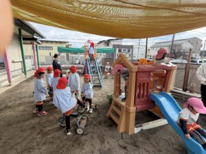 冬の冷たい風の中でも、子どもたちは元気いっぱい!鬼ごっこをしたり、お砂場で協力して大きな作品を作ったりと、オンとオフの切り替えをしっかり楽しみながら過ごしました。
