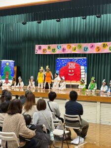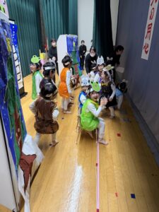 ステージの上では、これまでの練習の成果を存分に発揮し、大きな声でセリフを言ったり、音楽に合わせてのびのびと表現したりすることができました。