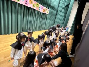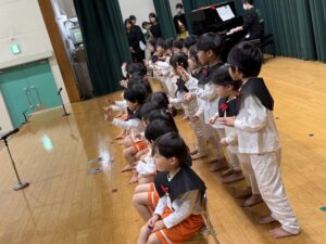 この発表会を通して、仲間を思いやる気持ちや、協力して一つのものを作り上げる大切さを学び、また一回り大きく成長したきりん組さん。