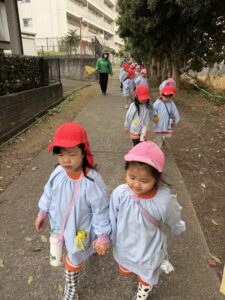 出発前、「うさぎ組さんと手をつないであげてね」と伝えると、きりん組のみんなの表情がキリッと引き締まりました。