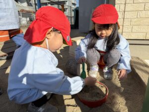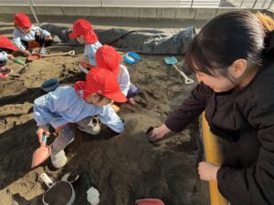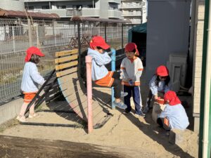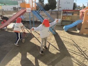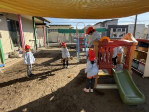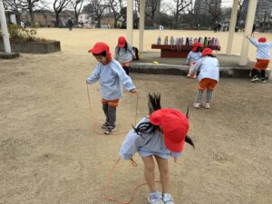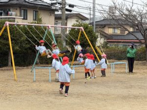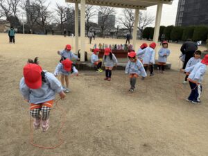 • 園庭遊び: 寒さに負けず、元気いっぱいに走り回って体を動かしました。