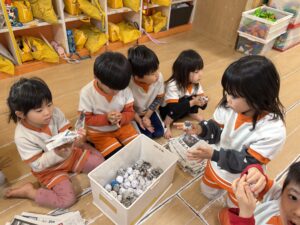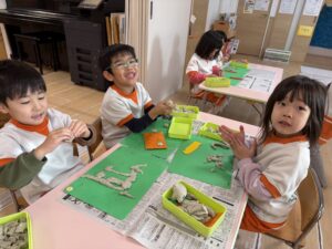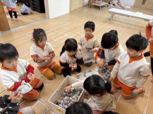 節分に向けて!合同で「豆作り&豆入れ競争」