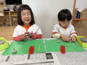 来週はいよいよ節分があります。自分たちで作った豆を持って、心の中の鬼も退治できるかな?